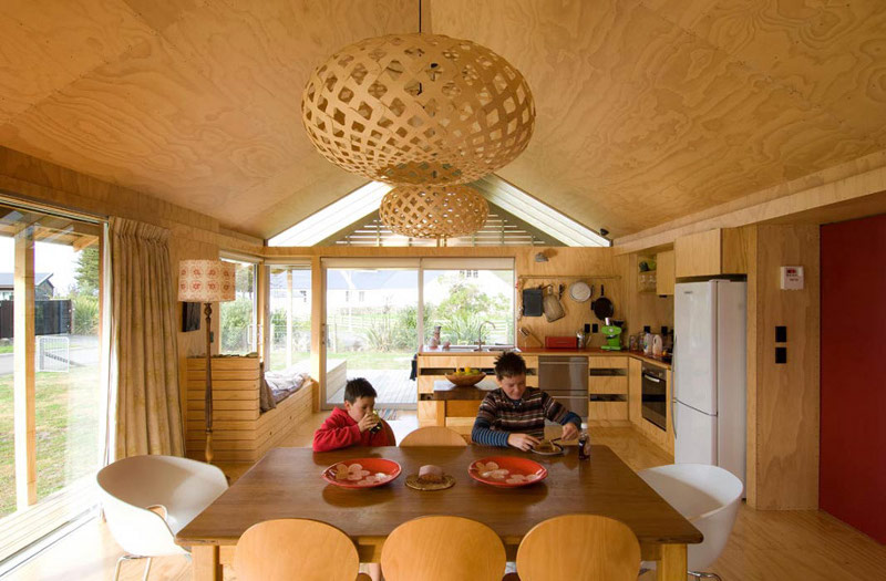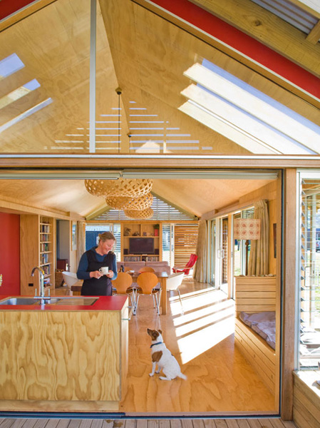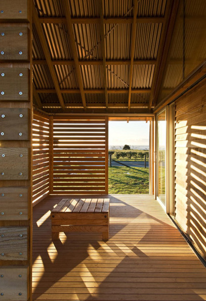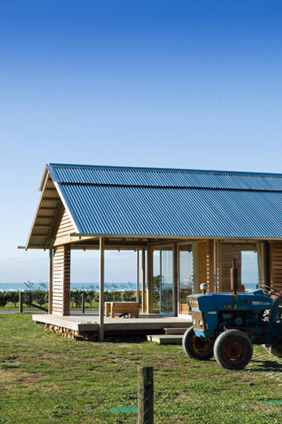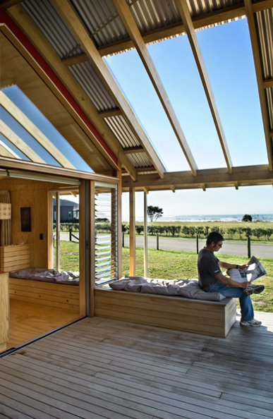 A simple family holiday home at Shoal Bay on the rugged coastline that is New Zealand’s southern Hawkes Bay. An unpretentious bach, the beach side shelter that the kiwis do so well. This is a holiday home where sand is trekked in and wet swim suits are the norm. Sliding screens provide shelter from the changing winds and decks between pavilions allow the sun to shine in and cosy spots to be in yet out. A house that has a sense of place, of past, of person, of purpose. A house by Wellington-based Parsonson Architects.
