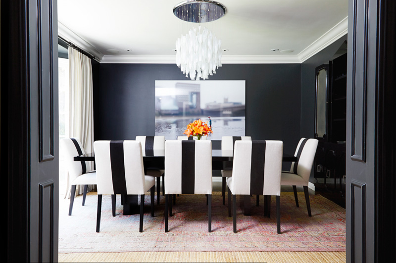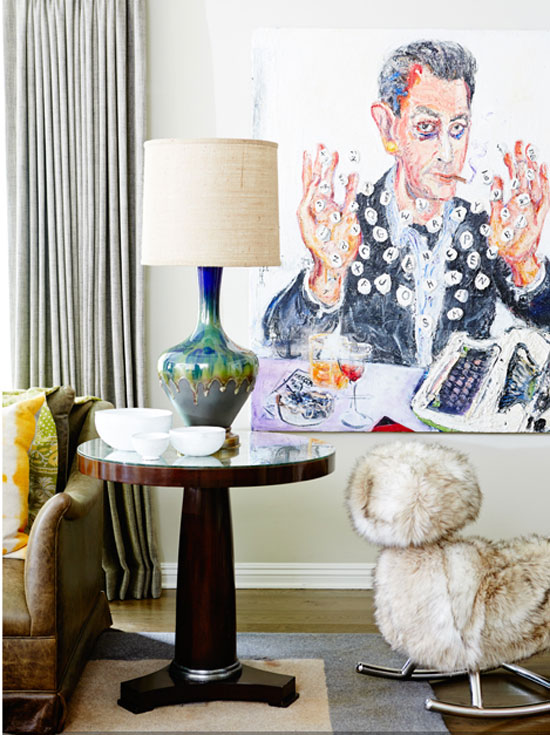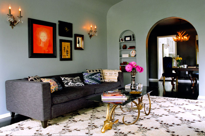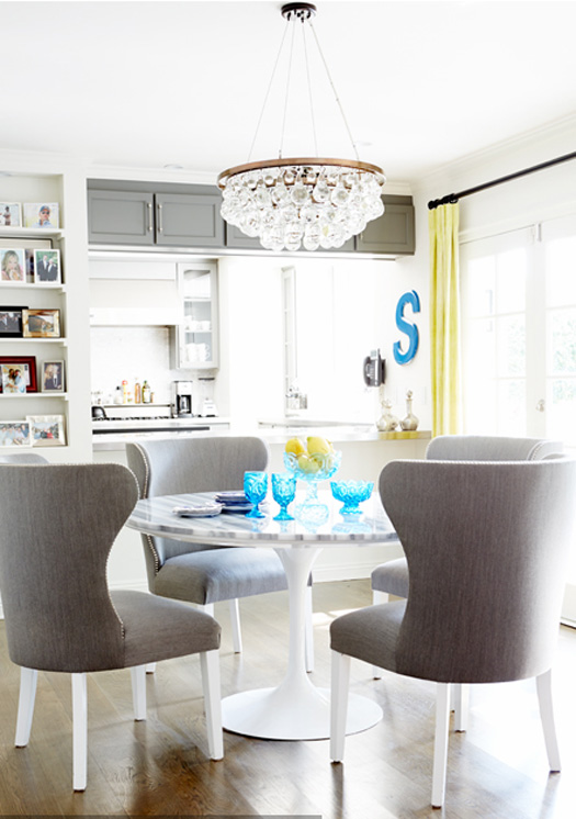 It has been several years since we featured Beverly Hills interior designer Kishani Perera (here and here). She continues to leave me captivated with her elegant yet eclectic, classy yet comfortable interiors that seem to get better and better over time. Throw in some vintage industrial bar stools into a chic grey kitchen. Paint a door or dining room walls black for drama. Kelly green walls and kitchen cabinets for the daring. Love it all.