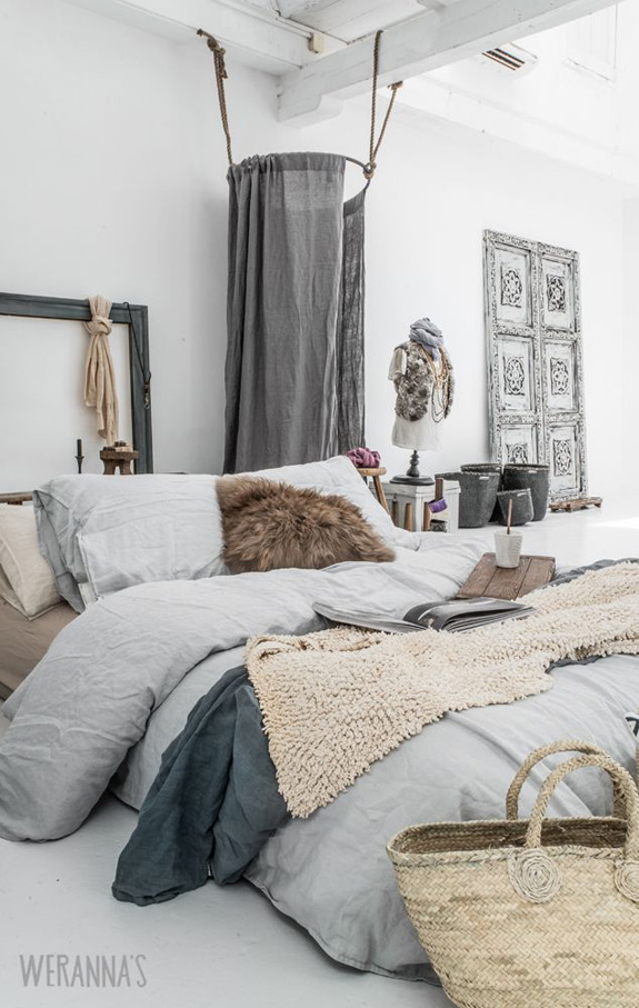 I have been proclaiming my love of grey as the unrivaled neutral for years now, and frankly, grey is the new black. Many people will soon have grey on their minds as the release of the Fifty Shades of Grey movie is coming in a couple of weeks (around Valentine’s Day, coincidentally). I got together with Hamacha and Sun from clothing e-destination Theory of Gaia who will be sharing photos from this post over on Gaia Full Circle, and in the spirit of this theme, they sent me a beautiful grey sweater dress. So without further ado, I present you with a selection of some juicy grey room porn.