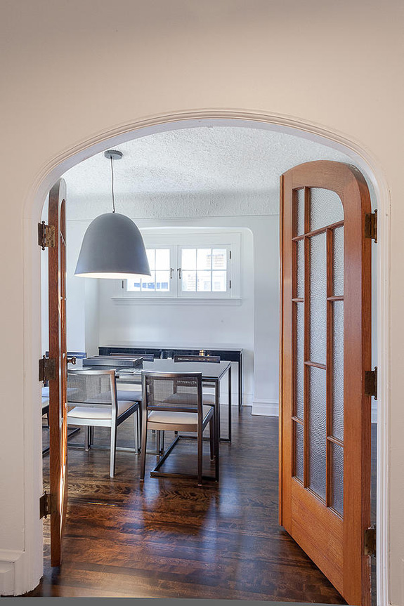 I wanted to feature this home a few months ago when its interior designer Veronica Martin had contacted me but I had to wait for its appearance in the spring issue of Ottawa magazine. Now that it has hit the streets, here it is! I love this addition and renovation of an 80 year old home in the Wellington Village neighbourhood of this fine city of Ottawa. It brings some modern amenities and sophistication to an older home (that coincidentally looks like it may have been designed by the same architect as my home!) while keeping the stunning features like leaded glass windows and curved ceilings intact. The new kitchen is an absolute gem – the simple white glossy cabinetry is taken to another level with the black hardware making a subtle graphic impact. And lawd half mursey that light fixture over the dining table! *SWOON* Fantastic job Veronica! So glad to see someone bringing style and class to this city.(Photos: Urszula Muntean Photography)