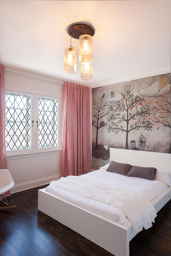 I love the combination of modern furniture with the traditional architectural elements. The mix makes it look streamlined but feel very homey. I especially love the mural in one of the bedrooms. It feels like it could have been there for hundreds of years but will be timeless.