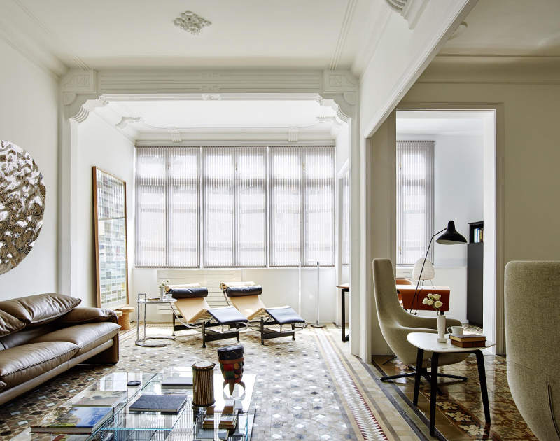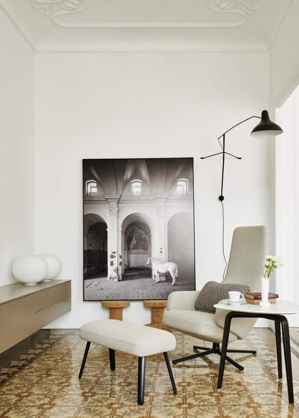 The renovation of this 140 m2 art nouveau apartment in the Eixample district in Barcelona has resulted in a beautiful light-filled, airy home which respects the property’s original elegance while providing contemporary luxuries. Love the restored original floors and ceilings and the design classics of the era juxtaposed with modern pieces. By Barcelona-based design studio vilablanch.