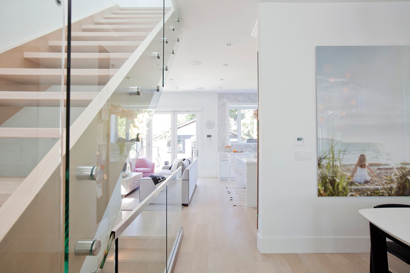 What a beautiful house this is!!! Modern and minimalist in architectural details, and so open and bright. Loving the drama the dark blue velvet sofa adds to the front sitting room and the pink club chair to the TV room. Fabulous style by Vancouver-based Angela Robinson.