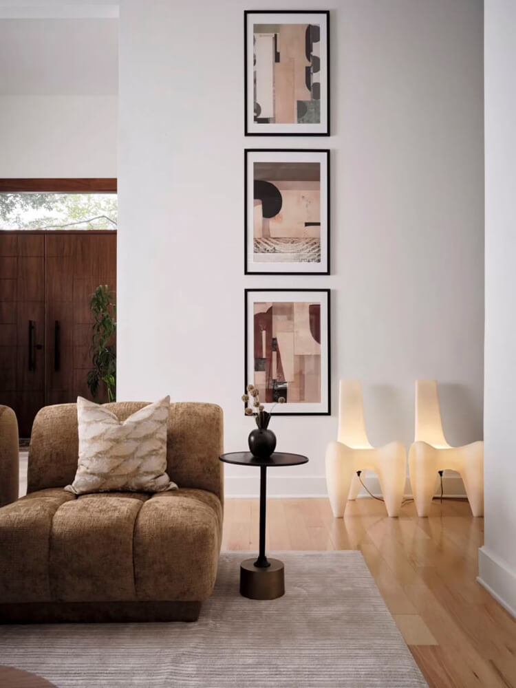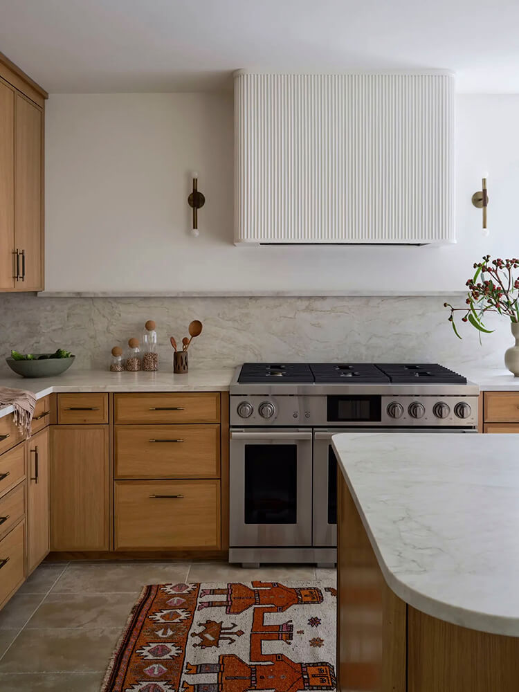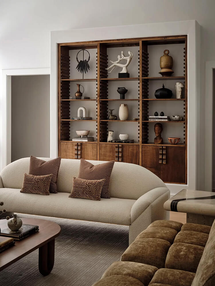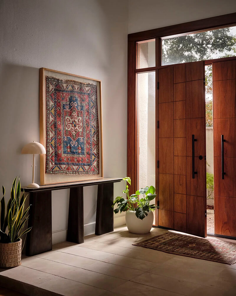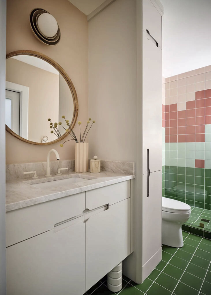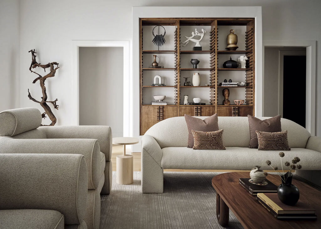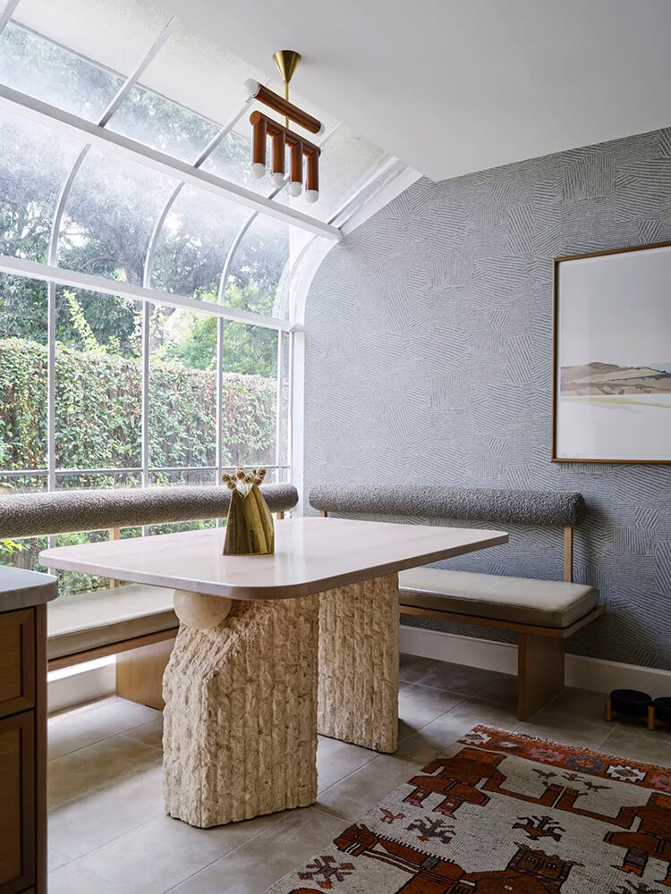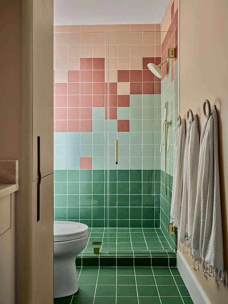 I adore postmodern design, and I feel like the world could use soooo much more of it. Bold colour choices, geometric patterns, shapely furniture that are often pieces of art themselves….it’s a vibrancy and creativity that really has a wonderful appeal and you can’t help but smile at. Designer Jen Talbot created such a fabulous home here with a more neutral colour palette in the main spaces (the brown and black accents add the pop postmodernism calls for) and then a huge wow factor in the main bedroom and children’s bathroom. The bedroom and ensuite colour palette is spectacular. Photos: Stephen Karlisch.