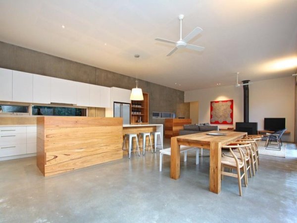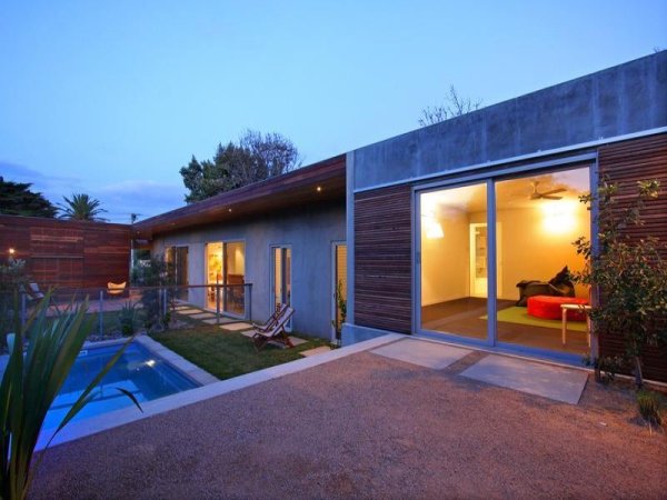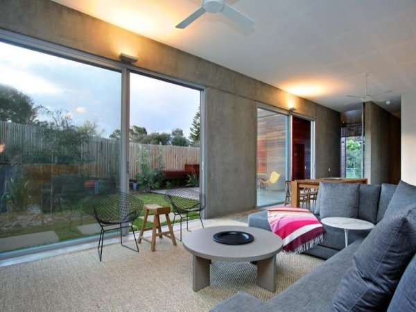 When the wind and waves roll in from Antarctica a beach shack needs to be cosy and warm. This minimalist modern concrete and timber bunker may not spring to mind as your typical beach abode but when inclement weather is chilling your bones on the southern coastline of Australia you’ll be toasty warm inside. Designed by de Campo Architects. Real estate stalking again here.