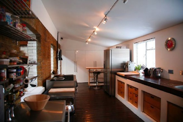 I was back on Location Partnership checking for more funky pads (since this one was such a hit), and I came across another amazing space – a “loft conversion with many original features and sleek interior. The property compromises cast iron radiators, Victorian porcelain brickwork, old de-commissioned lift and exposed wooden beams“. WOW. This loft is huge and I could cram it with so much stuff it’s giving me heart palpitations. The potential is astronomical, although the current residents have done not too bad a job doing it up.