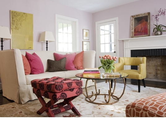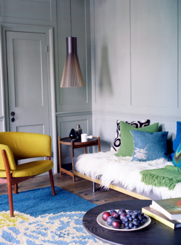 Jack, a long-time co-worker of mine, and his wife Shannon are redoing their living room and Shannon is looking for paint help. She left a comment on Jo’s post earlier today but I thought I’d post it seperately in the hopes there are some good suggestions out there as I am not much help. Here’s her dilemma: “I am looking for a soft, silvery blue-grey (not grey-blue–I’ve found there’s a difference) paint for my living room. I recently painted with a soft grey-blue (i.e. blue was the base colour) and it just reads as ‘kid’s room baby blue’. I”m looking for something like the wall colours in the fourth and fifth rows down (the living room with the portrait of the woman over the mantle and the living room with the yellow/chartreuse chair and blue rug). Does anyone have any colour suggestions???“