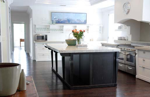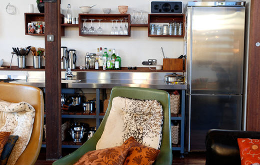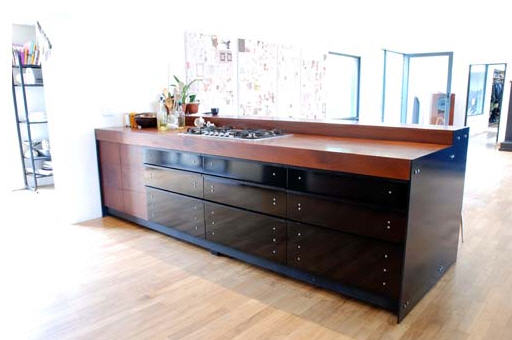 Love the dark walls and timber kitchen and that window and seat. Yes very real and very stylish.