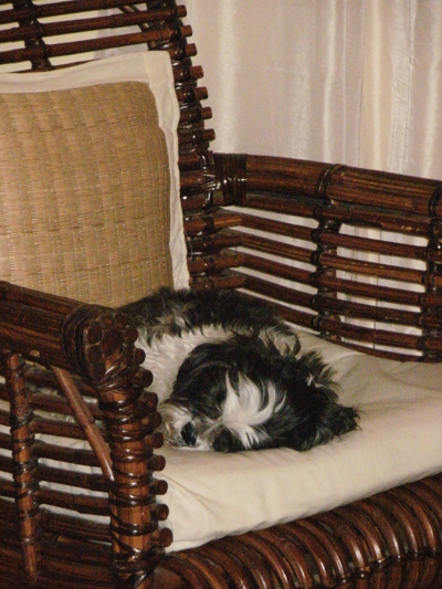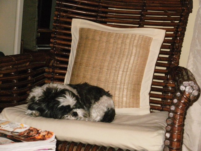 “The pets on furniture section always makes me smile and I’ve wanted to submit photos of my Shih Tzu, Nikita for some time. The snag in my plan? Nikita dashes away whenever her radar picks up a camera in the room. Here are some paparazzi shots taken while she was napping in a Pottery Barn chair she rarely lounges in.”