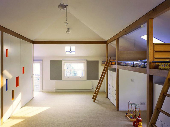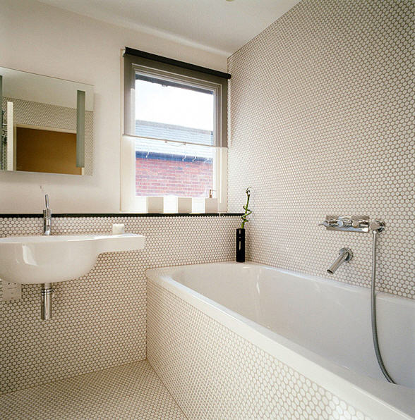 The more time I spend searching for photos for the blog and the longer I live in my architecturally-lacking home, the more I appreciate the work of architects like London-based David Mikhail who just ooze creativity. There is no space I did not fall in love with when I was devouring his website. A mesh staircase, a super fun kid’s room, sliding walls of glass, an indoor-outdoor kitchen (!!!), a FAB penny round tile bathroom….ALL going in my inspiration folder. Prepare to have your socks knocked off.