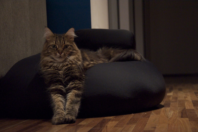 “I’m an architect from São Paulo Brazil, and I just couldn’t resist sending you the pics of my 1 meter Maine Coon cat! His name is Whiskey, and he just loves to sit-sleep-walk all over things that don’t belong to him! So I’m sending you some pics of him on my pillow, and getting ready to jump on my 3 legged chair!”