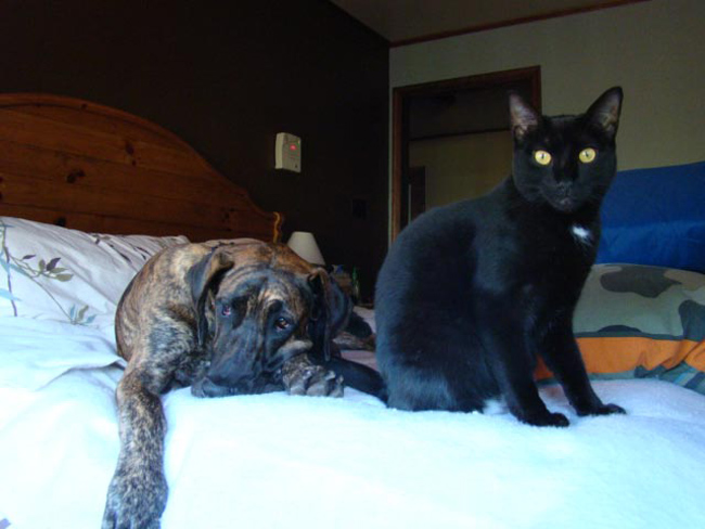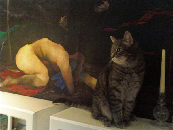 “I’d like to submit my darling Grendel for ‘pets on furniture’. Grendel passed away suddenly last Sunday of a blood clot, he was a very healthy and frisky boy up until that day (the photo of him on the fridge was taken a week before he died). My sweetheart and I are very grateful for the seven great years we had him.”