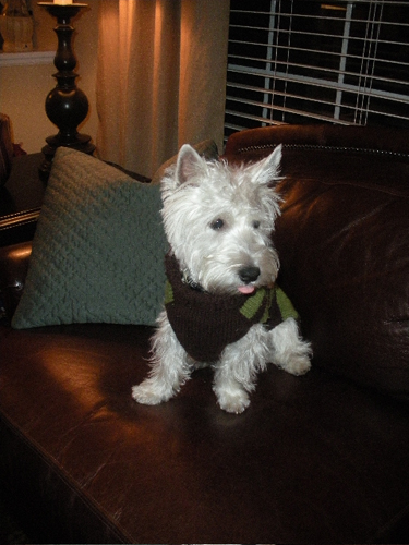 “This is my 10 month old Westie Myles. And yes he is more important than my Henredon leather sofa.”