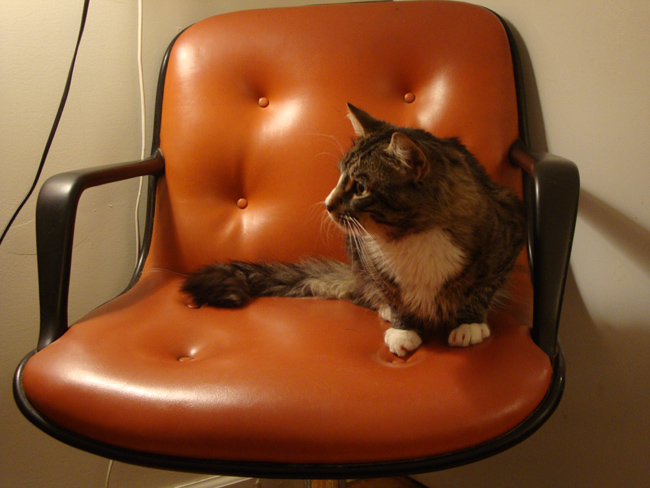 If you’d like to send us photos to include in next week’s “pets on furniture” post, please ensure your photos follow our basic rules: First, the pet must be on a piece of furniture. And said piece of furniture must be clearly visible in the photo, so it takes center stage rather than your pet. (Think of it more of a photo of a great piece of furniture…and your pet happens to be sitting on it). And second, the photo must be of decent quality. If it’s REALLY dark or fuzzy (from a camera phone) then it may not make the cut. Thanks! (Photos can be sent to desiretoinspirekim[@]hotmail[.]com and PUHLEASE don’t send me closeups of your pet!!!)