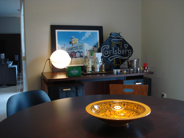 Thiago is a 27 year old from Curitiba, Brazil, and he wanted to share his home with our readers. He decorated his home with vintage and industrial items and he did it all on his own. I think he’s done an awesome job turning this into a hip bachelor’s pad. Congrats Thiago! (To all the ladies out there reading this post –  better make sure your S.O. is not within viewing distance of your monitor or you may need to replace your grandmother’s antique rosewood hutch with a tool chest, or you’ll find a beer sign propped on your buffet where your Chinese porcelain ginger jar used to be).