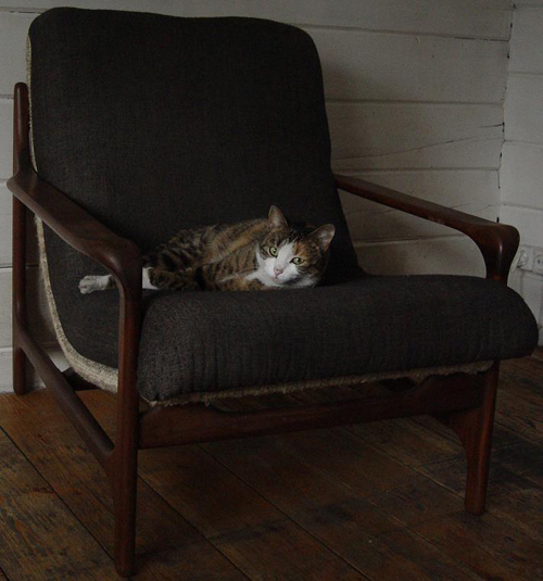 “It’s Trasia, one of our tree cats in our sitting room. The armchair is her favorite place and it’s really hard when we want her to get out.”
