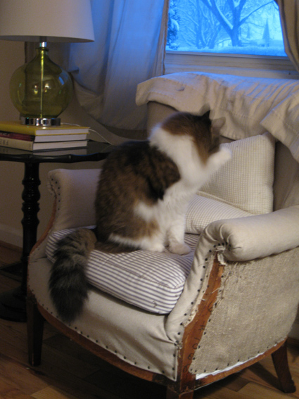I rarely post a comment, but your "pets on furniture" postings just make me grin from ear to ear! I love to see a site that appreciates fantastic interior design, but also posts photos of funiture well used by our furry friends. Its the best of both worlds!