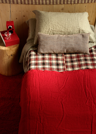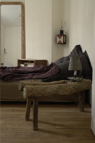 Be still my beating heart. That basket and stool so casual in the corner, those orange chairs, that little red bed, that carpet, that tree trunk table, that green. Utter utter bliss.