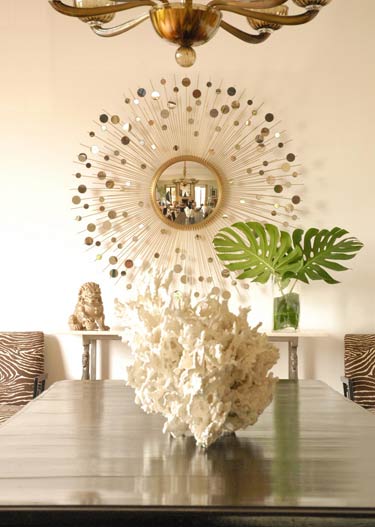 The dining room is my favorite by far! The coral and the sunburst mirror, everything is stunning!