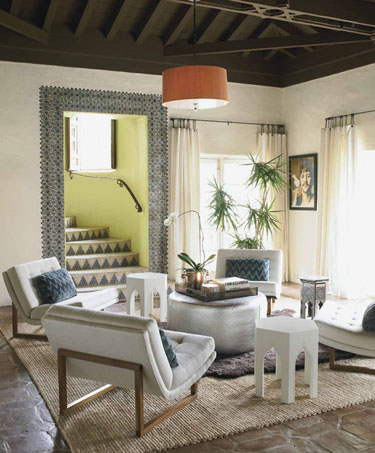 British born former model Amanda Masters is a master at design excelling in modern eclectic and global styles. Lots of bold fabrics were used in her spaces, such as suzanis which I am not sure I can ever tire of (nor can Jo as she just purchased a gorgeous one on eBay).