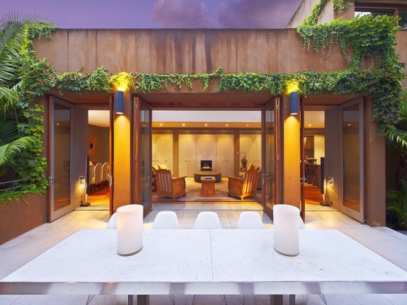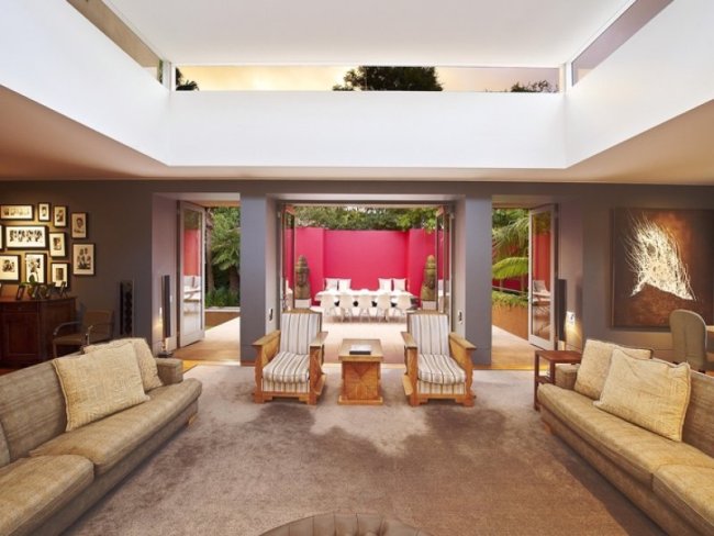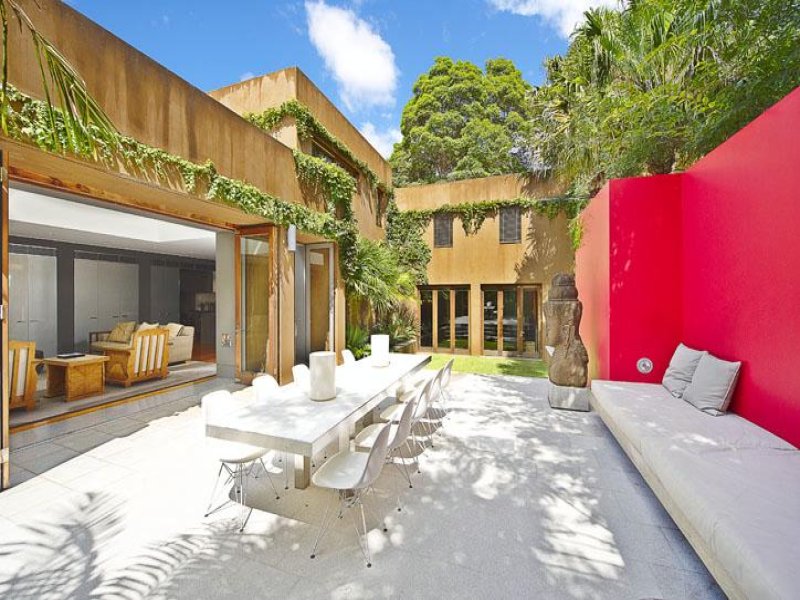 At times elegant, luxe but contemporary, understated but shocking. It’s the fuchsia focus. Today I’m stalking this Woollahra, Sydney house on a scale that most us can only dream about. Lessons to be learnt? The eye is drawn out from the interiors to the stunning outdoor spaces. That’s a bold statement colour choice. The more personal spaces are intimate and monotone with only the occasional reference to THAT wall colour. It’s a play between deep dark and bright bold, shadows and light, serious and fun.