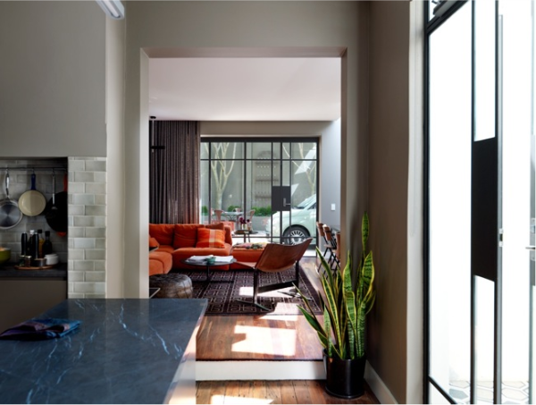 I love that image with the leather couch and the orchard ladder