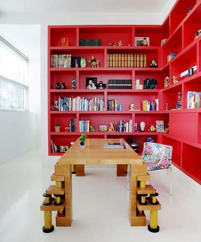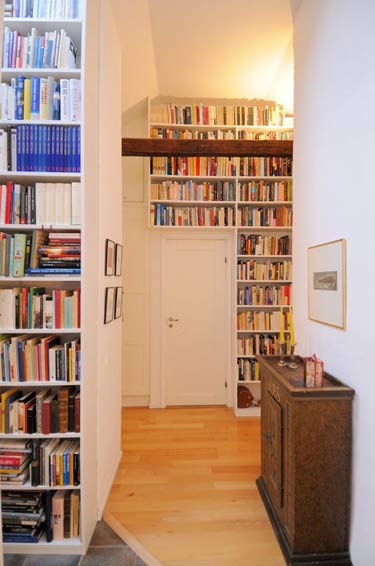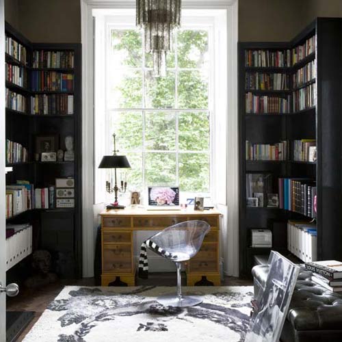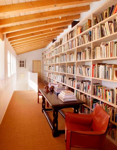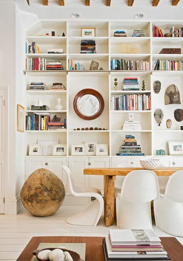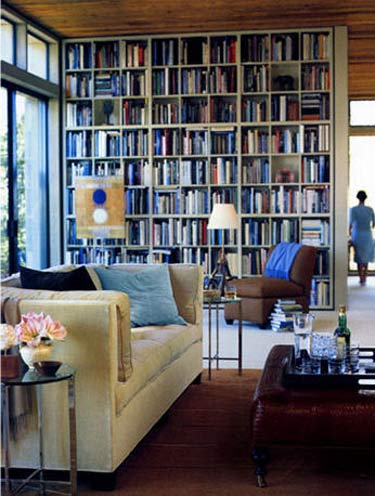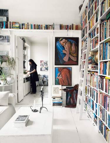 Sigrid from Norway emailed with a reader request that I thought I’d tackle today, because it’s an easy one. 🙂 “I love library and rooms and walls full with bookshelves. I would be honoured if you could post some pictures of rooms and walls full with bookshelves.” I would give anything to have a library, a room filled with floor to ceiling bookcases to fill with my ever-growing collection of shelter mags and books. I love to see how people cope with their own book and mag collections. Here are some rooms where large collections are easily stored away.