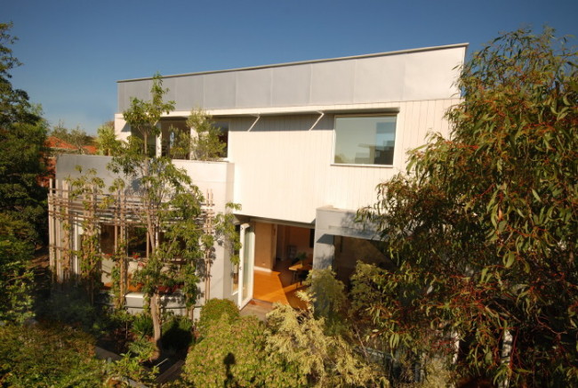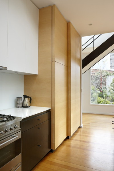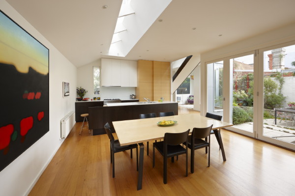 Located on a highly desirable street two blocks from the beach in the Melbourne suburb of St. Kilda is this zincalume clad extension grafted to an Edwardian home in a dramatic yet