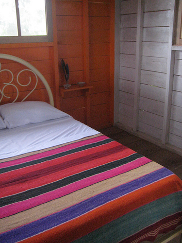 The Anchor Council is a design & branding agency with an artisan approach. Olga Naiman, a leading set designer and prop stylist in New York (you’ll know her work from Domino) and Amy S. Morris, dynamo media strategist but always with one foot firmly entrenched in interior design, develop signature styles for boutique hotels from interior design to all the details that tie the look together. Their latest project however was an unusual challenge. For this Peruvian jungle retreat at Chimbre on the Bolivian boarder they re-designed 21 rooms. In the process they worked closely with local craftsmen (love that green chair!), scoured markets for accessories and completed the whole project in 10 days. It’s a monastic look (this is a retreat after all), spartan but relaxed. From bland (the last photo is a “before”) to colourful and all in remote jungle!