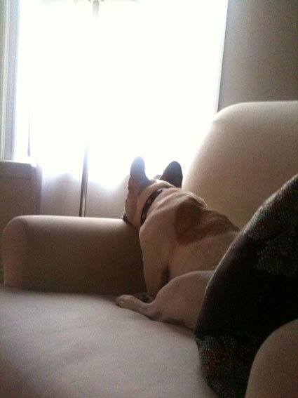 “my pup lucy. my new table top sculpture…. she likes to sit on the window shelf and watch the world go by.”