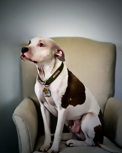 “This is Gus. He belongs to Designer Darryl Carter. He posed on a chair in Darryl’s Middleburg, VA Country retreat.”