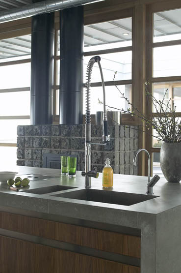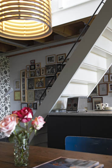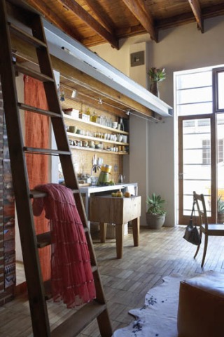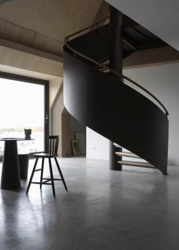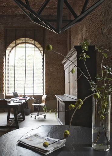 I love the lines in these photos, from the staircases to the floor tiles to the rafters, not to mention the beautiful space itself. oh, and I want that burner.