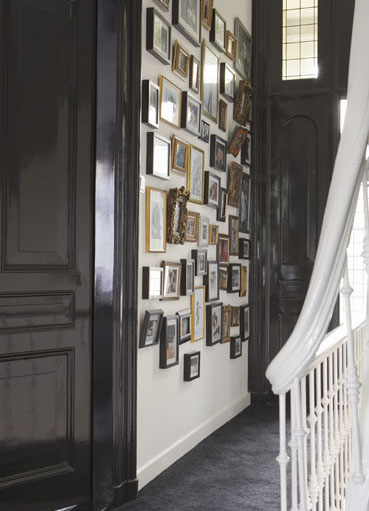 I would love someone to come do that to our place! (not that it would look like that!) I really like the top left collection of frames. What great photographs!
