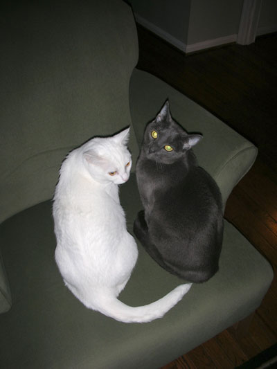 This is Sailor (white) and Mouse (grey). It seems as though they’ve put themselves in a time out for something I’m sure they did wrong.