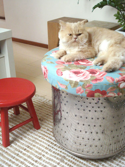 I’m Daisy, from Brazil. And this is Milá, my persian cat. In this picture her fur is short. She is on the bench made by myself.