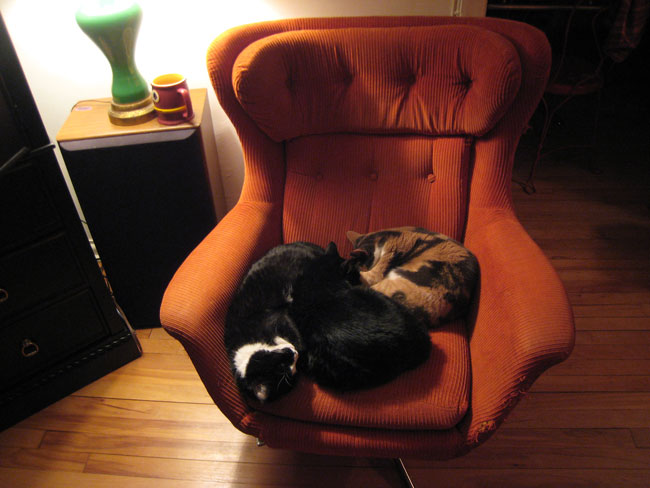 I’ve attached a double-whammy, of Twinky and PJ cuddled on a chair.