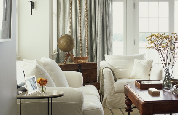 Whether tailored and luxurious with sensuous leathers and rich woods and just a touch of refined masculinity or light and casually refined in that summer on the coast way, designer Patrick Sutton isn’t easily pigeonholed. Unless you call contemporary elegance with just enough luxe a pigeonhole. His work is at once glamorous as well as stylishly and deceptively simple. It’s romance and travel, luxury and layering. Life would be lovely in any of these rooms. As an aside I have a major design crush on the pink Murano chandelier married with those pink silk drapes. Love.