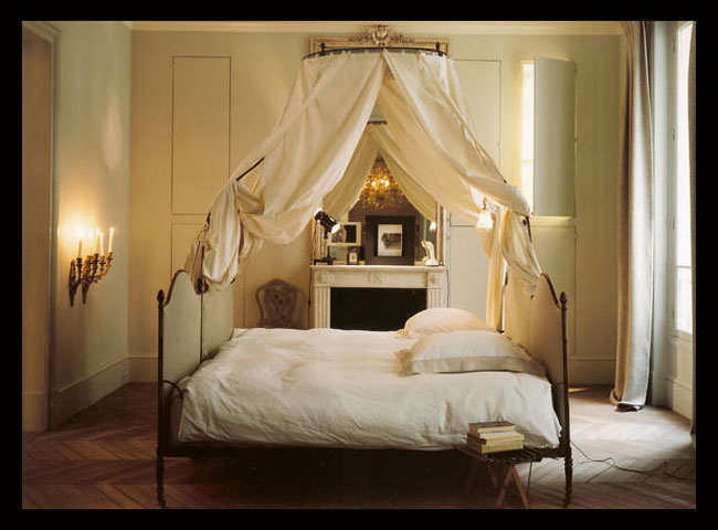 Interesting! The canopy bed definitely has a french feel. And I kind of like the large floor lamp in the second photo. The brick distressed ceiling and candle light fixture are gorgeous in the 8th photo. Thanks for the tour!