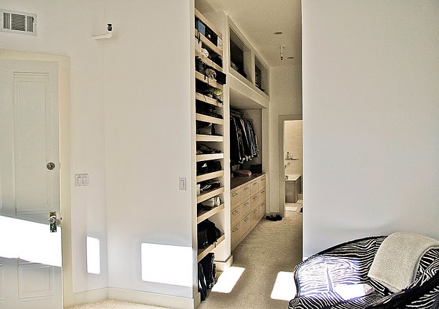 We recently received this request from reader Judy: “Hi! I’m moving into a new space with my boyfriend after the summer. We realized that the closet space was going to be an interesting dilemma to solve – and was hoping you could post some inspiring photos of other people’s tasteful yet non-boring closet sharing solutions!“. Now, this request was a bit tough as I don’t have many closet photos in my stash, and then many are not exactly in keeping with this request but I figured I’d post whatever I could find as I am going through the exact same scenario at my house. Jeff is moving in this weekend and I have got to get the damn dressing room finished in time for both of us to be able to fit all of our clothes. Luckily I have a tiny bedroom (12′ x 7′) that is basically useless for any other purpose but to be a closet. The plan is to hang 2 rods on one end of the room and wall to wall shelves on the other. I’ll buy some baskets for socks and unmentionables, and the rest can be folded or hung. But enough about my space – here are some closets I found that may or may not be useful non-boring solutions for Judy’s new space. (The first one is my all-time favourite, and I’ve used it a few times already on the blog but I can’t help it. It’s perfect.)