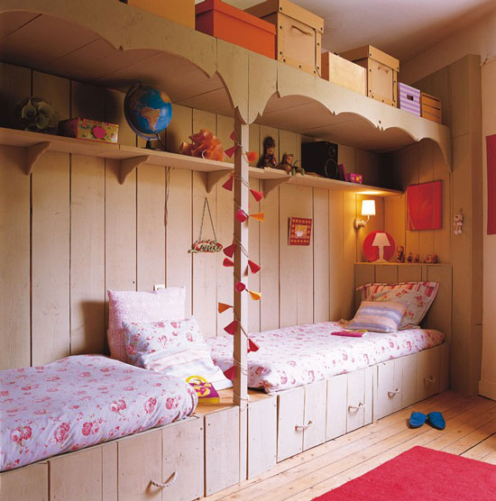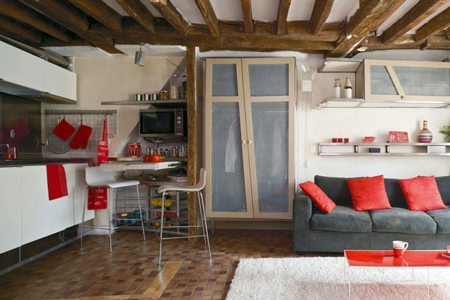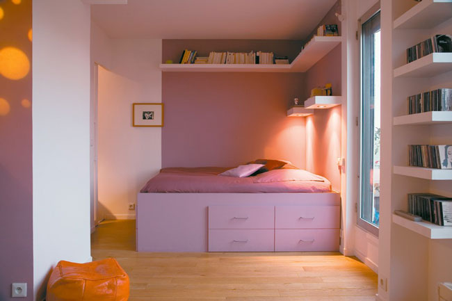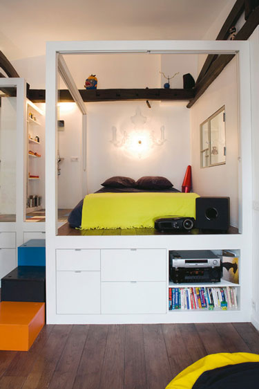 Happy Friday everyone! I’ve got a busy weekend ahead filled with errands, chores around the house and other boring stuff. Hope you all have better things planned. 🙂 Thought I’d share some more photos from the fabulous French site du côté de chez vous (previous post here). FYI: They have lots of great small space solutions (some photos included below) for those of you who have emailed us begging for help in that area.