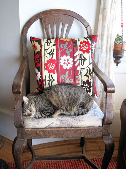 If you’d like to send us photos to include in next week’s “pets on furniture” post, please ensure your photos follow our basic rules: First, the pet must be on a piece of furniture. And said piece of furniture must be clearly visible in the photo, so it takes center stage rather than your pet. (Think of it more of a photo of a great piece of furniture that you want to show off…and your pet happens to be sitting on it). And second, the photo must be of decent quality. If it’s dark or fuzzy (from a camera phone) then it may not make the cut. Thanks! (Photos, your name and a brief description can be sent to desiretoinspirekim@hotmail.comand PLEASE don’t send me closeups of your pet!)
