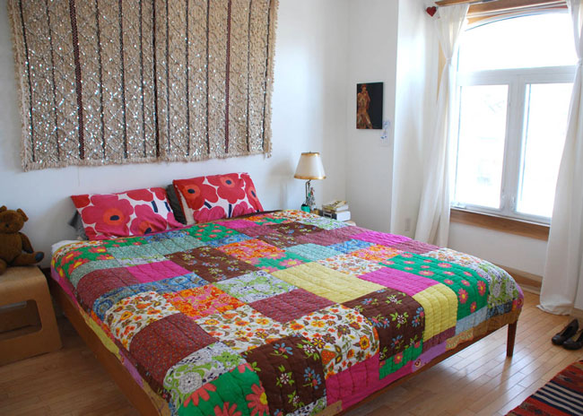 I want to steal that patchwork quilt (or maybe just get one of my own). What a beautiful home!