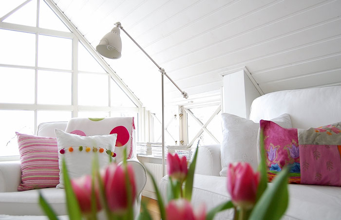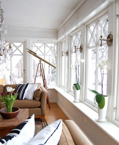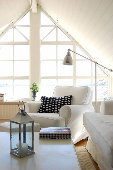 Helena, of the blog På vår udde, emailed us with photo after photo of her gorgeous home on Malaren Lake, outside Vasteras in Sweden. OMG the views, and those windows are to die for! It’s a little slice of heaven, and she has decorated it beautifully – simple and comfortable, perfect for a family of 5.