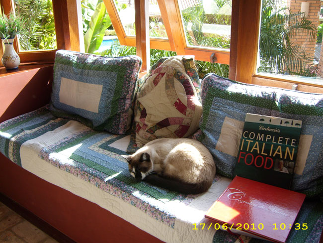 “Meu nome é Alessandra Ayub. Sou do Brasil. Moro na Granja Viana,em São Paulo.Esse é o Nescau, o gatinho da família.Ele adora dormir no sol da manhã que bate na bay window, na sala de almoço. Espero muito que voces gostem. Obrigada.”