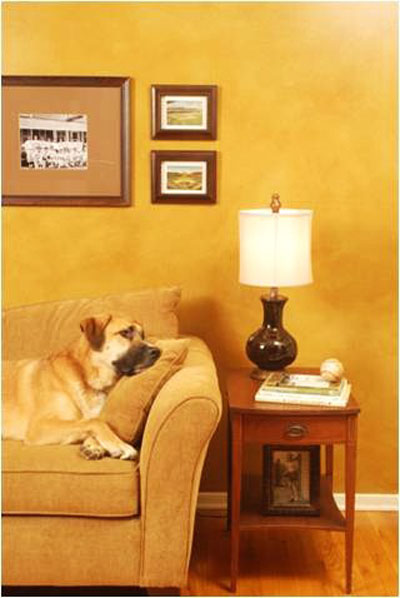 “Had to share my boy Buddy, this was taken during a photo shoot for the paint company I work for – he’s a perfect match to PPG’s 319-6 Bronco Brown 2 years later and I still can’t keep him off the sofa!! The other is my beloved Grace who has taken over the L/R sofa. Both are former fosters and very much adored.”