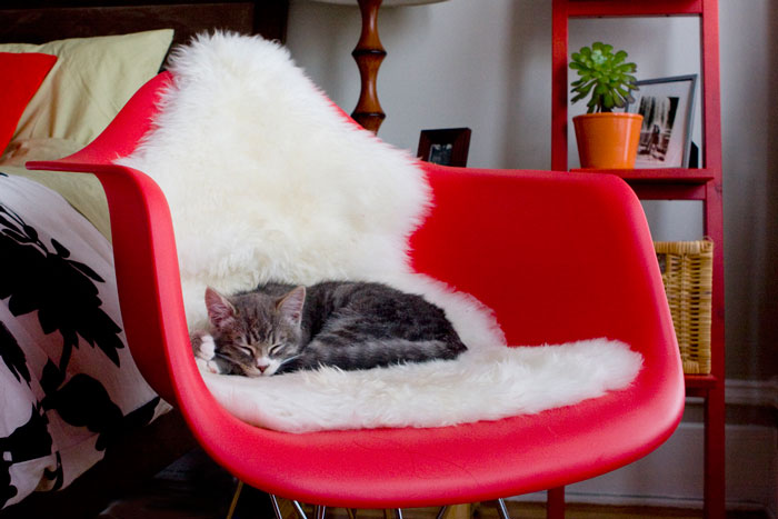 If you’d like to send us photos to include in next week’s “pets on furniture” post, please ensure your photos follow our basic rules: First, the pet must be on a piece of furniture. And said piece of furniture must be clearly visible in the photo, so it takes center stage rather than your pet. (Think of it more of a photo of a great piece of furniture that you want to show off…and your pet happens to be sitting on it). And second, the photo must be of decent quality. If it’s dark or fuzzy (from a camera phone) then it may not make the cut. Thanks! (Photos, your name, location and a brief description can be sent to desiretoinspirekim[@]hotmail[.]com and PLEASE don’t send me closeups of your pet!)
