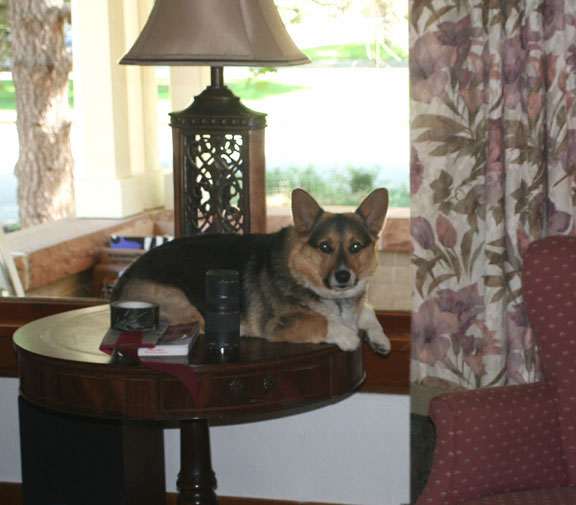 “Snoopy is nothing like his namesake cartoon character; Snoopy is a baa-aad dog. He eats chocolate, then has to have his stomach pumped. He eats prescription meds, then has to have his stomach pumped…. He does things, baaa-aad things. How he managed to climb onto my sister-in-law’s table without knocking over the very large and very expensive camera lens, or anything else, no one knows (see that tall black thing in front of him? yeah, that’s the lens). Snoopy. Wa-waaaa.”