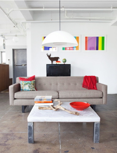 i adore this post…. there’s so many nice elements that i’ve been wanting to use for my house (the eames rocking chair, the grayish couches, and colorful stripes), this only makes me think my living room will look sweeeeet when it’s done! 🙂