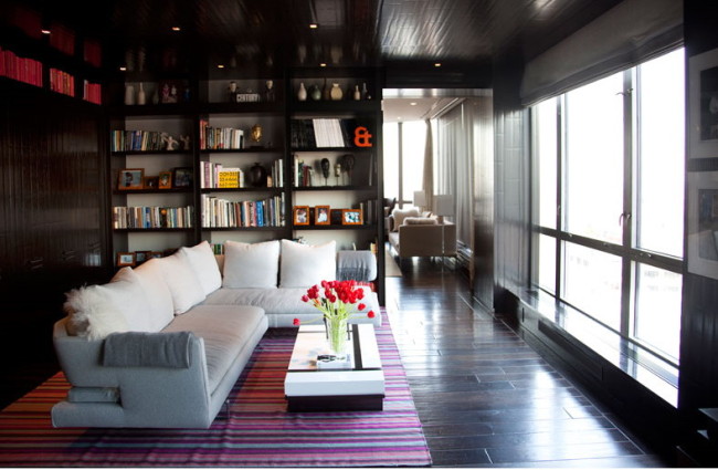 I agree, this photographer really captures the true feeling of each room design. Love the hardwood flooring in the 6th photo-plus the contrast with the colorful area rug is very vibrant, among all the other dark colors in the room. Great find! Thanks for sharing, and keep them coming!