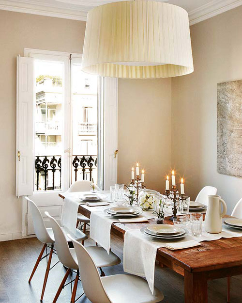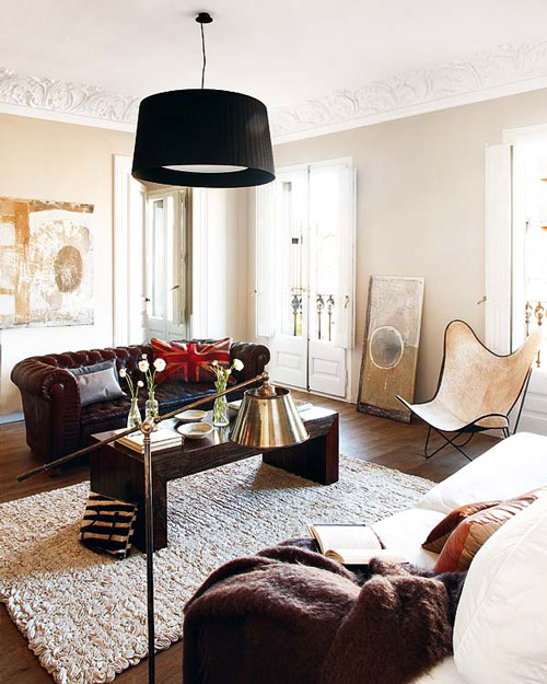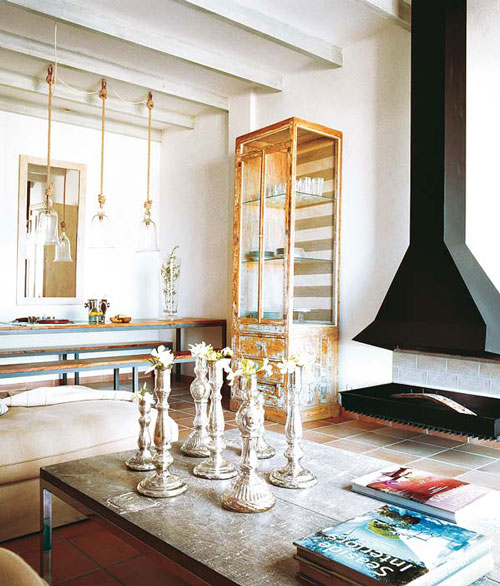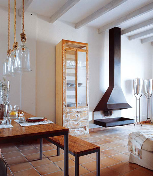 My fiancé and I spent the evening at my parent’s place getting the trailer put into place in the back corner of their acre property. (For trailer details check out her blog posts here). It looks TOTALLY adorable and is coming along quite nicely, especially after a coat of paint from my twin sister, and now that it’s off the driveway. My mom wants to have a little deck/stairs built out front of it and do some planting around it. I am hoping we can at least spruce the outside up a bit in the next 2 weeks before the wedding so we can get some photos in front of it. 🙂 That all being said (perhaps I’m rambling because we’re in day 4 or 5 of a ridiculous heat wave here and I’m lacking sleep) I didn’t have much time for blog stuff so I figured I’d just slap up some more photos from the lovely www.micasarevista.com. The first bunch are of a cool renovated apartment that is just the right amount of funky (hello brown leather chesterfield!) and vintage and comfy furnishings. The last 2 are of a gorgeous dining space (I love benches for seating at a dining table).